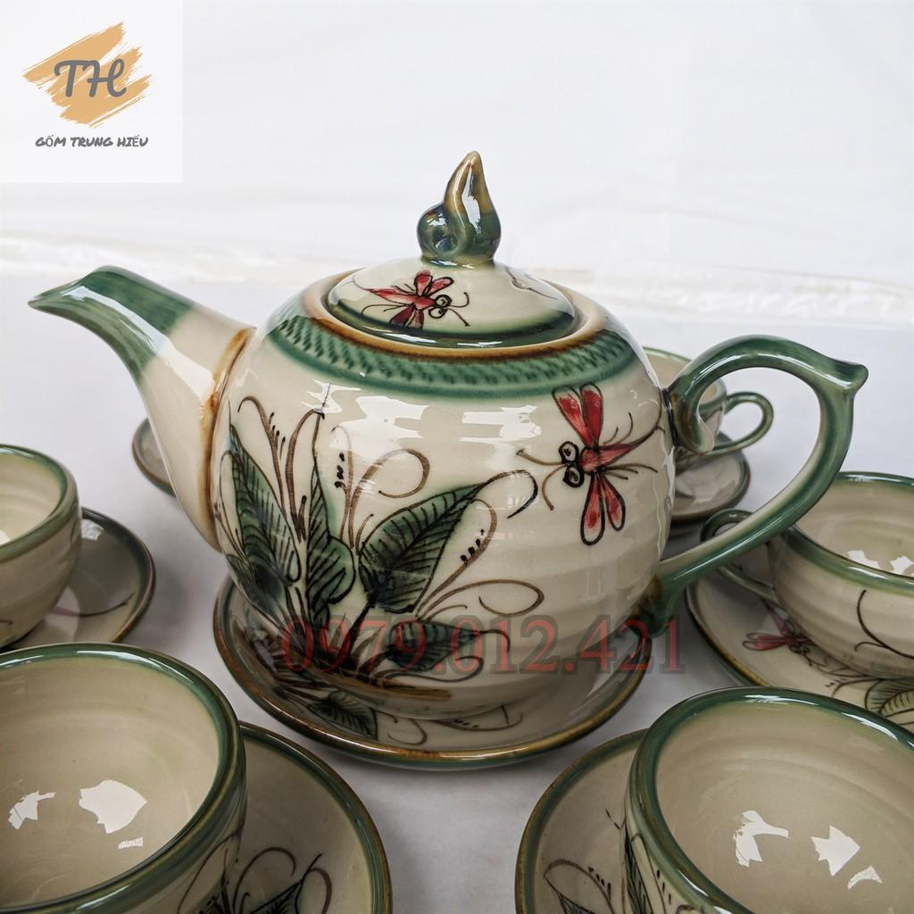 ✨Bộ ấm chén Bát Tràng men bóng vẽ Chuồn khoai đủ phụ kiện