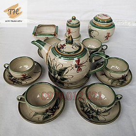 Bộ ấm chén Bát Tràng - Sản phẩm bao gồm: 1 ấm, 6 chén, 7 đĩa kê - Dung tích ấm: 400ml - Chất liệu: Gốm Bát Tràng ------------------------------------------------------------------------ Gốm sứ Bát Tràng Trung Hiếu