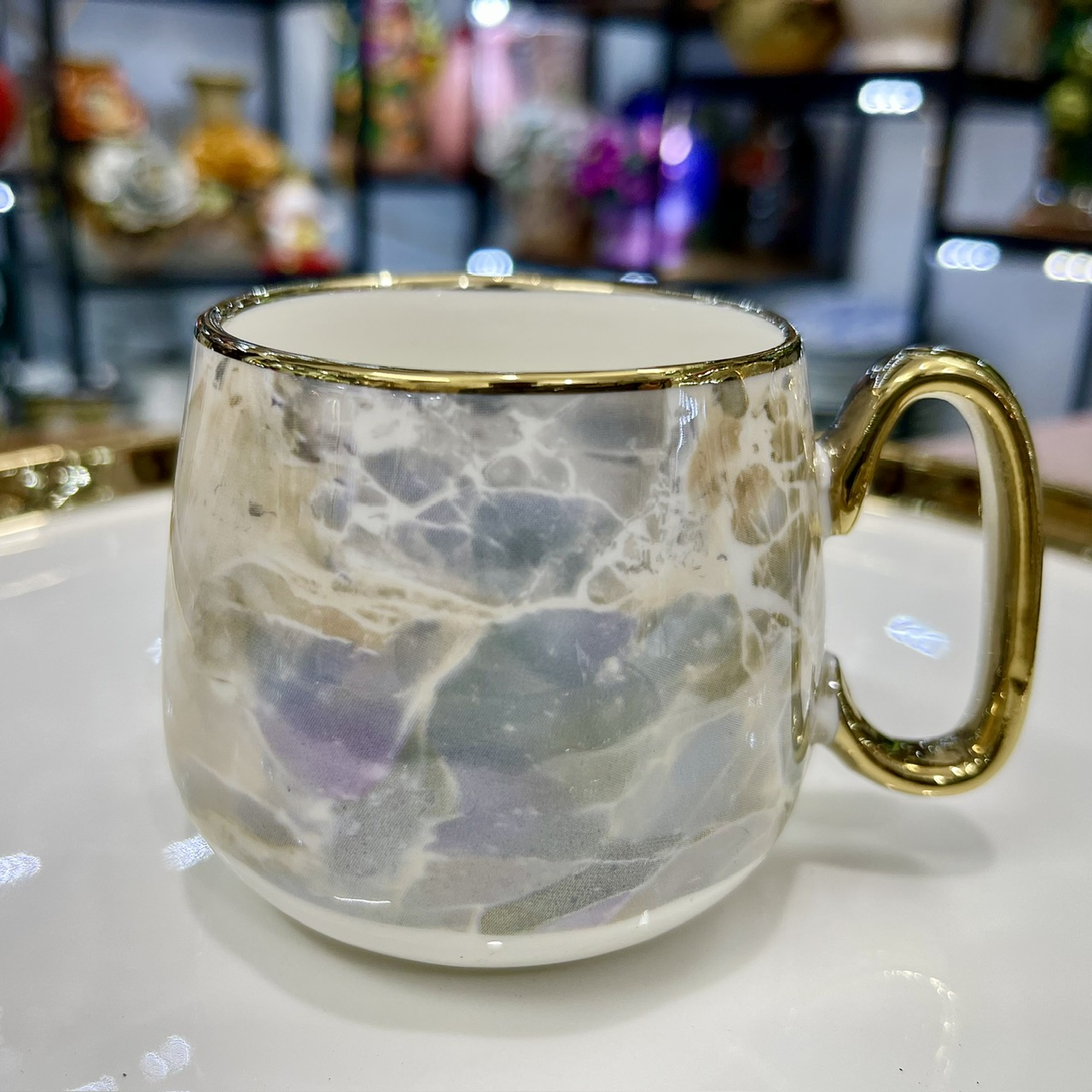 - Chất liệu: Gốm sứ cao cấp tráng men vân đã, họa tiết viền vàng 24k.