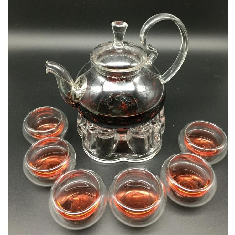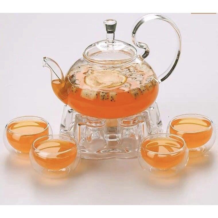 BỘ ẤM TRÀ THUỶ TINH CHỊU NHIỆT CÓ ĐẾ NẾN, BỘ ẤM CHÉN UỐNG TRÀ CAO CẤP 600ML