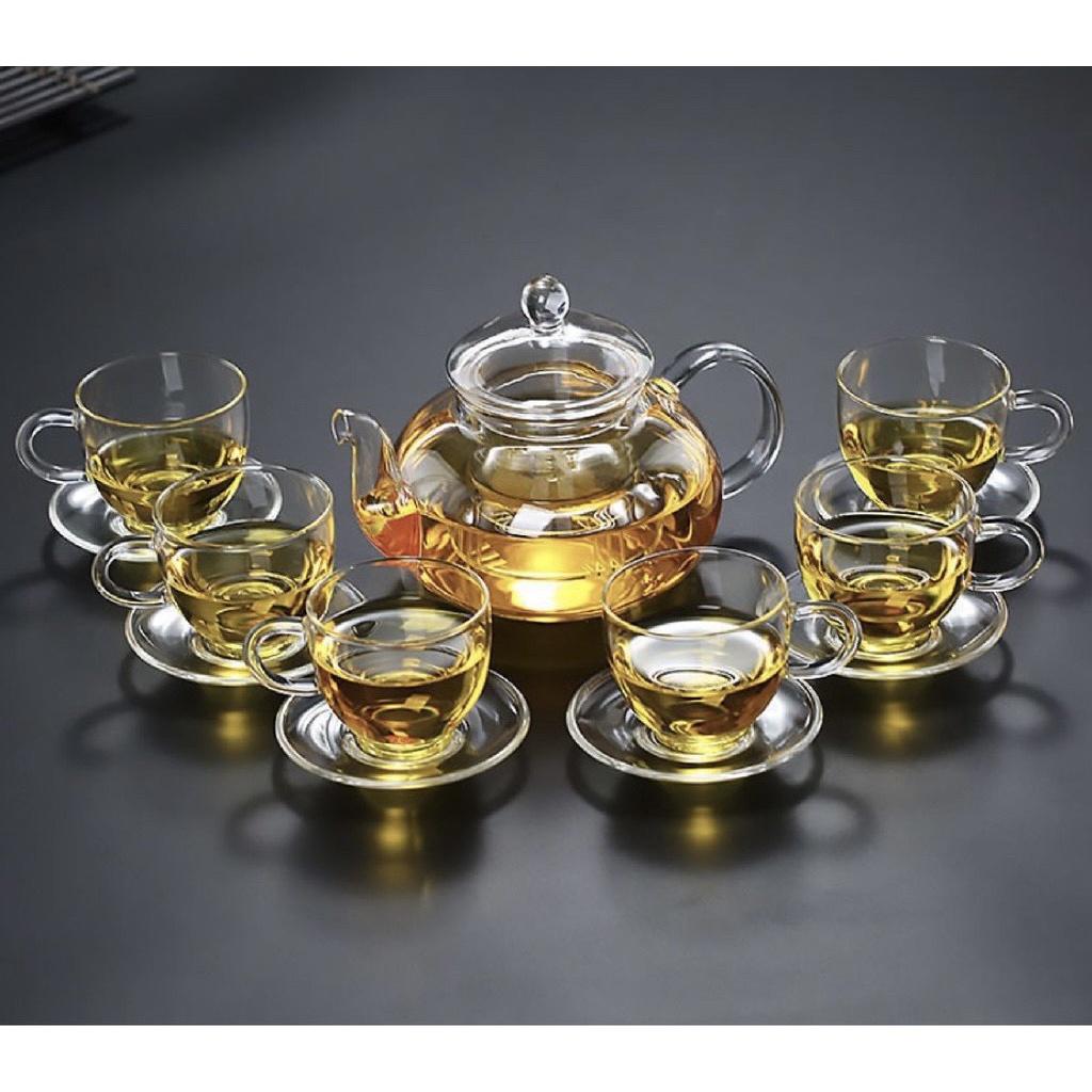 ✨Bộ ấm chén thủy tinh pha trà 600ml kèm 6 đĩa lót tách ( tặng thêm 1 đĩa lót ấm )