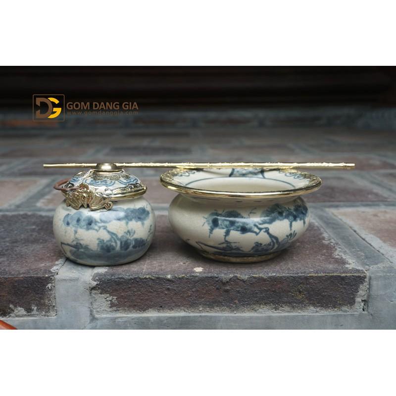 ĐIẾU BÁT men rạn bọc đồng Bát Tràng.