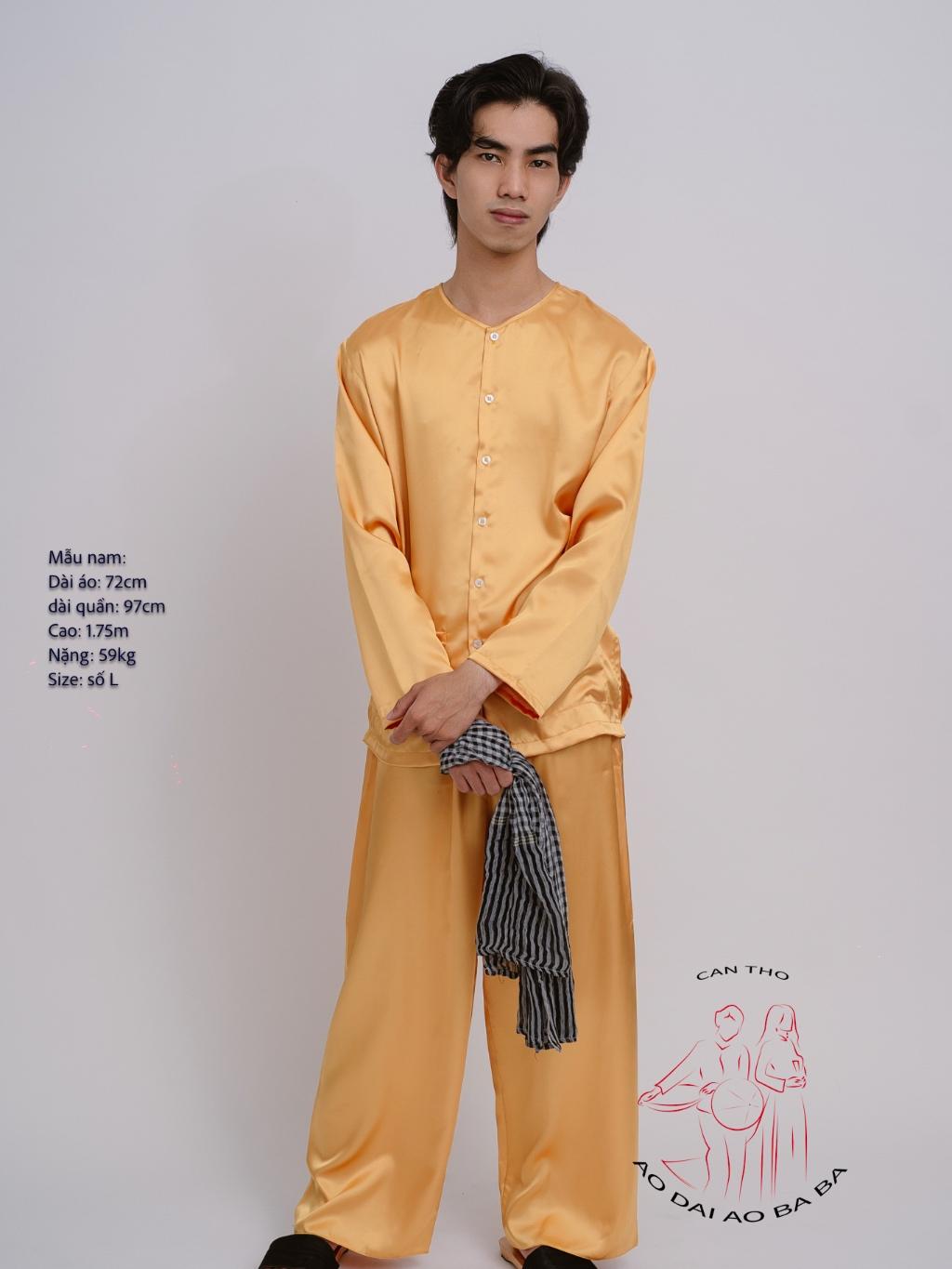 Bộ Bà Ba Nam Áo Vàng và Quần Nâu Vải Kate Mô tả chi tiết: • Chất liệu: Vải kate, thoáng mát, mềm mại và bền đẹp. • Màu sắc: Áo vàng- quần nâu đất