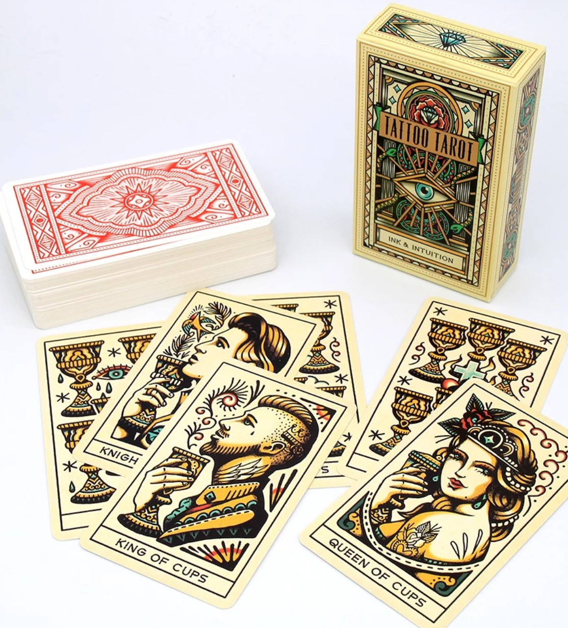 Bộ bài Tattoo Tarot Ink & Intuition sử dụng các tông màu theo phong cách vintage cổ xưa, sử dụng chuẩn Marseille làm cho bộ bài thêm phần tinh tế và đầy thử thách. Sản
