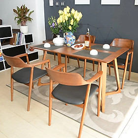Bộ bàn ăn mặt đá 1m4 hiện đại 6 ghế gỗ thịt nhập khẩu Đài Loan BA-B37-01