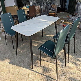 ✨Bộ bàn ghế phòng ăn Tundo mặt đá chất lượng cao kèm 4 ghế