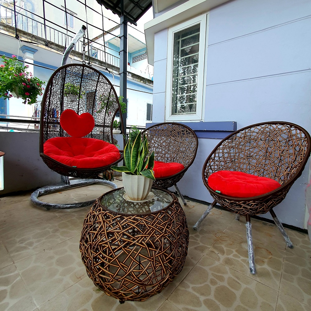 Bộ sản phẩm gồm : 01 bàn mặt kính + 02 ghế + 01 xích đu như hình