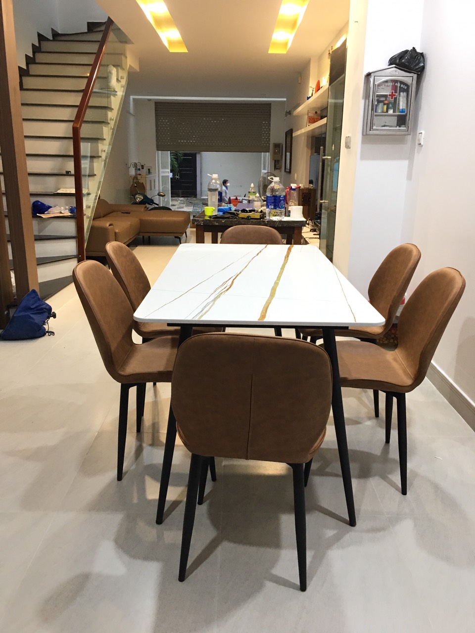 ✨Bộ bàn mặt đá cao cấp Juno sofa 1m6 x 80 cm và 6 ghế da