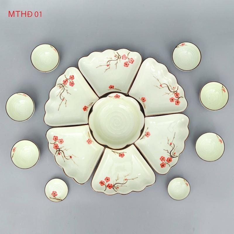✨Bộ bát đĩa hoa mặt trời 15 món, men kem. Gốm sứ Bát Tràng.