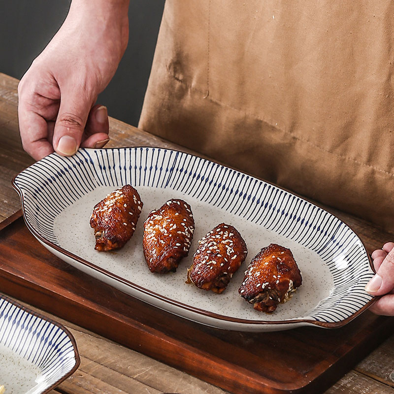 Bộ Bát Đĩa Gốm Sứ Hoa Văn Lá Dọc Phong Cách Nhật Bản Họa Tiết Thổ Cẩm, Thiết Kế Sang Trọng