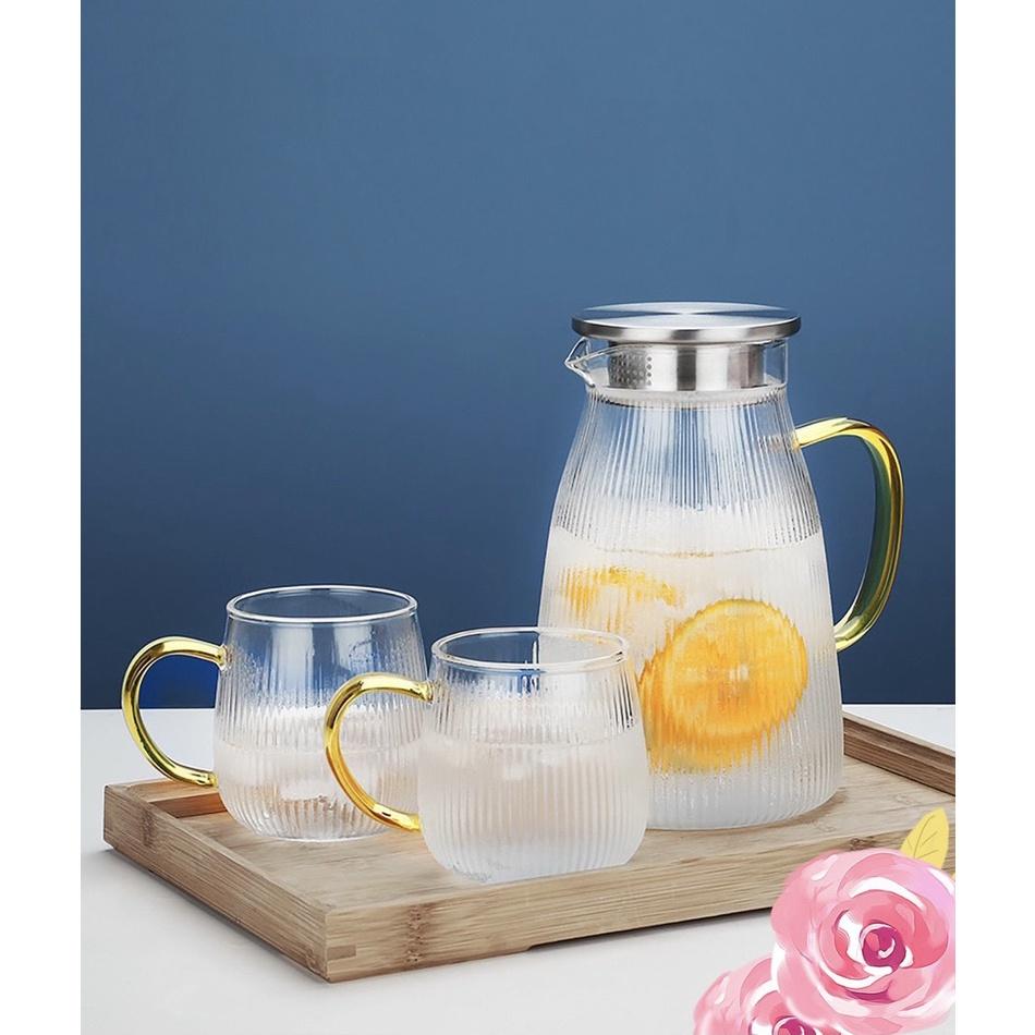 ✨BỘ BÌNH ĐỰNG NƯỚC UỐNG KÈM 6 CỐC THỦY TINH CHỊU NHIỆT LÊN TỚI 400 ĐỘ C NẮP INOX