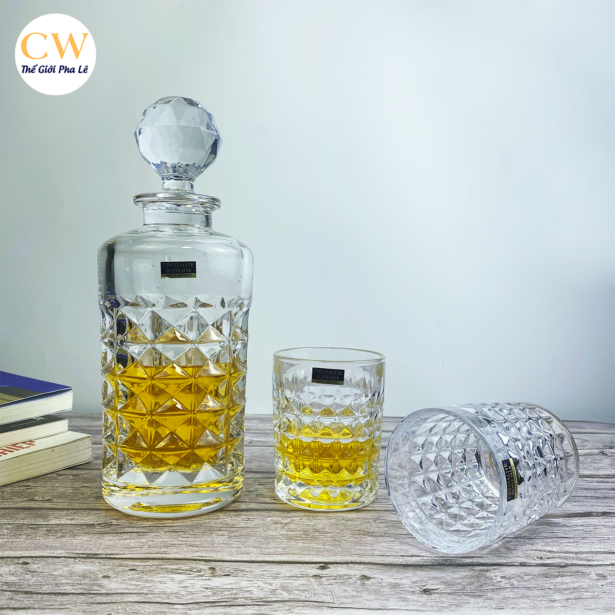 Bộ Bình Ly Rượu Mạnh Pha Lê Tiệp Bohemia Diamond (1 bình 6 cốc) sang trọng và đẳng cấp.