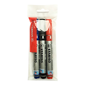 ✨Bộ bút lông dầu STABILO Mark-4-all PERMANENT - Bộ 3 bút đầu vuông xanh + đen + đỏ (MK653-C3A)