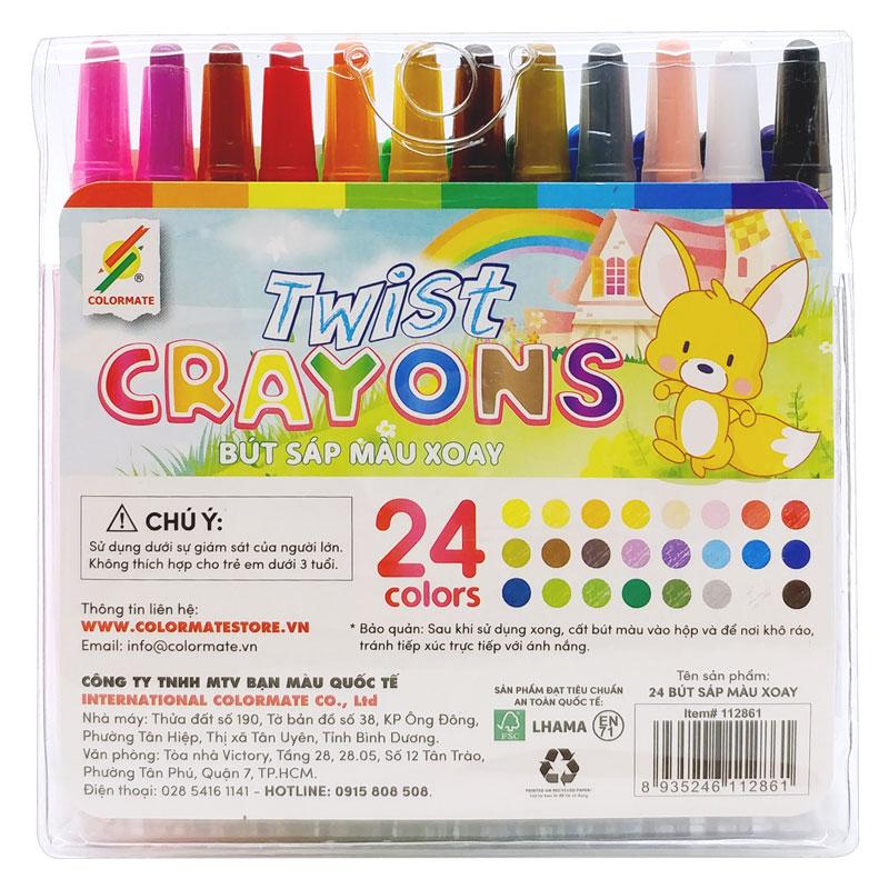 Bộ Bút Sáp Vặn - Colormate 112861 (24 Màu) - Hộp bút màu sắc tươi sáng đa dạng màu sắc khác nhau, bé có thể tha hồ sáng tạo nên những bức tranh của m.ình.