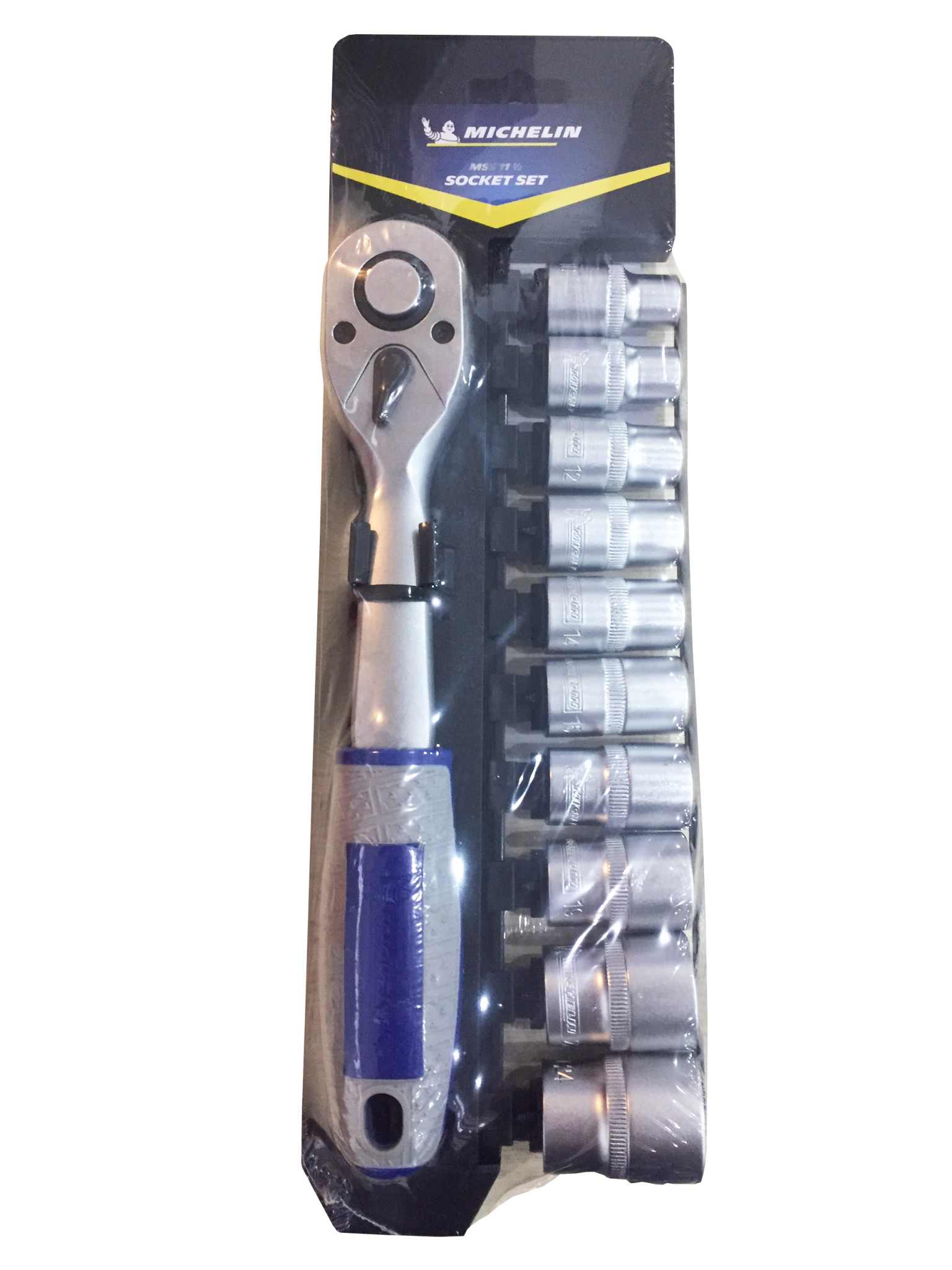 Bộ 17 ổ cắm 1/2" Bao gồm: 12 ổ cắm Dr 1/2": 10-11-12-13-14-15-16-17-18-19-21-24mm 1 tay cầm ratchet tháo lắp nhanh 1/2" 72T 2 thanh nối dài Dr 1/2": 5"(125mm) & 10"(250mm) 1 ổ cắm bugi: