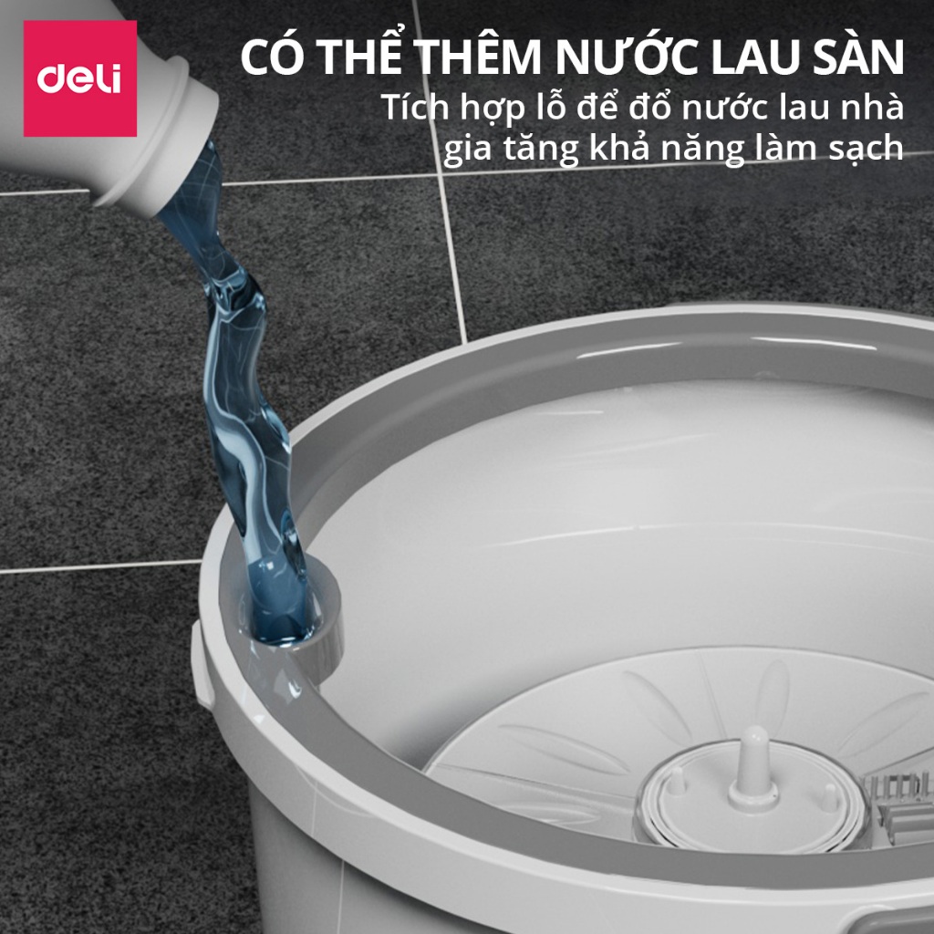 Bộ Cây Lau Nhà Tách Nước Bẩn Deli - Bàn Lau Gập 90 Độ, Có Thùng Lau Nhà Tự Vắt Thông Minh, Chổi Lau Nhà 360 Độ