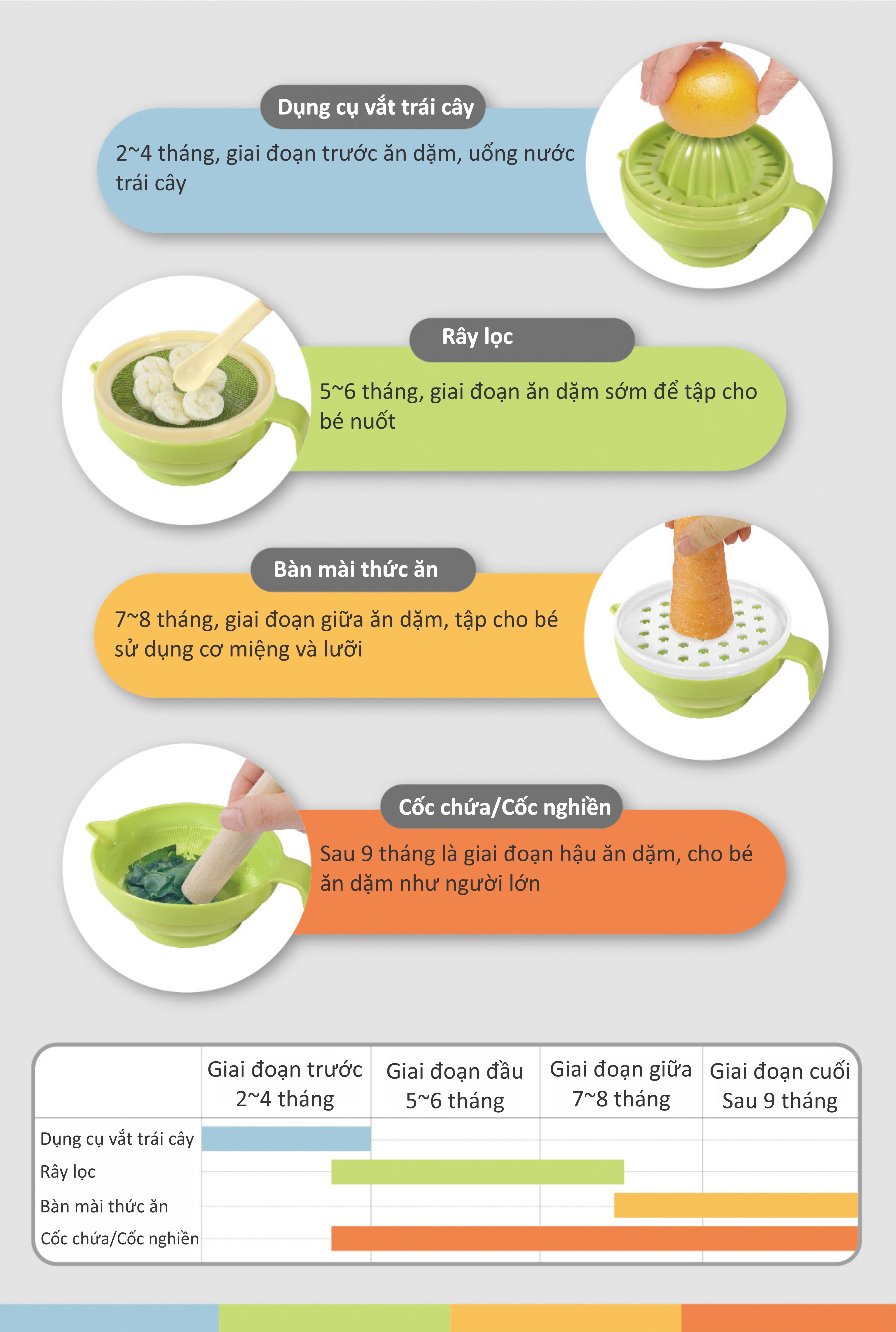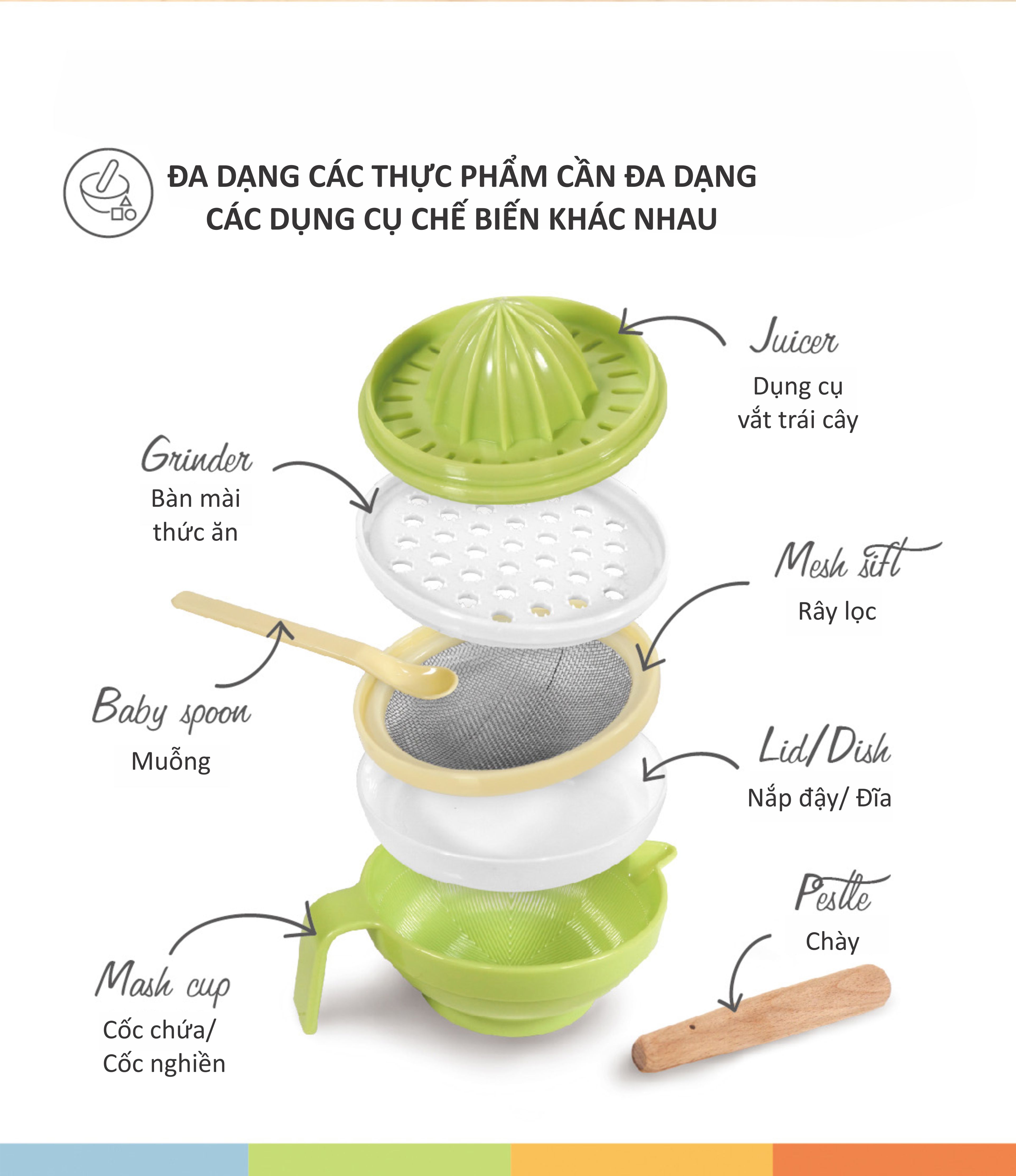 - Chày: dùng để giã nhuyễn thức ăn cho bé.