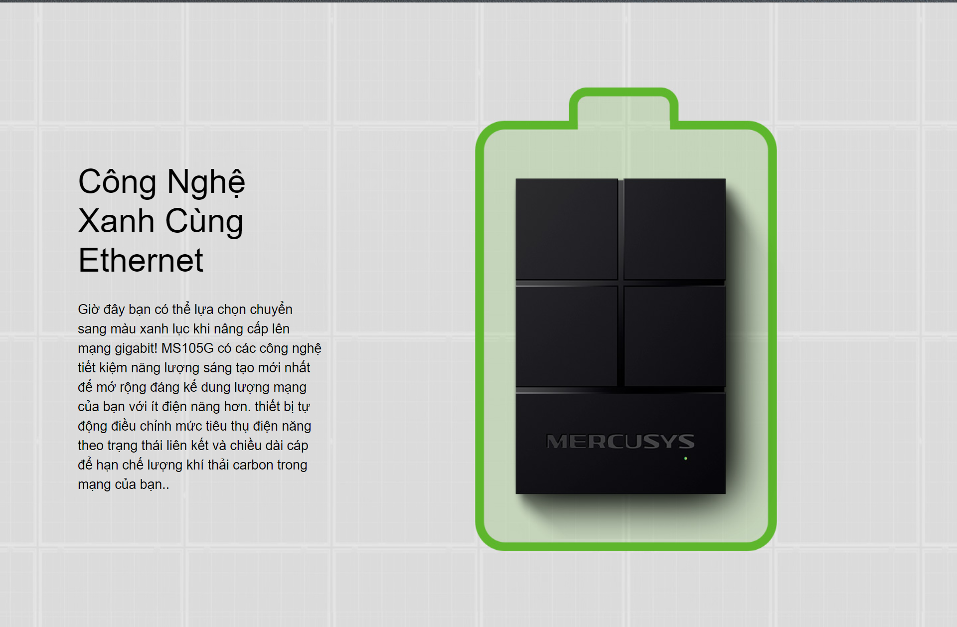 • Công nghệ Ethernet Xanh giúp tiết kiệm năng lượng lên đến 82%.