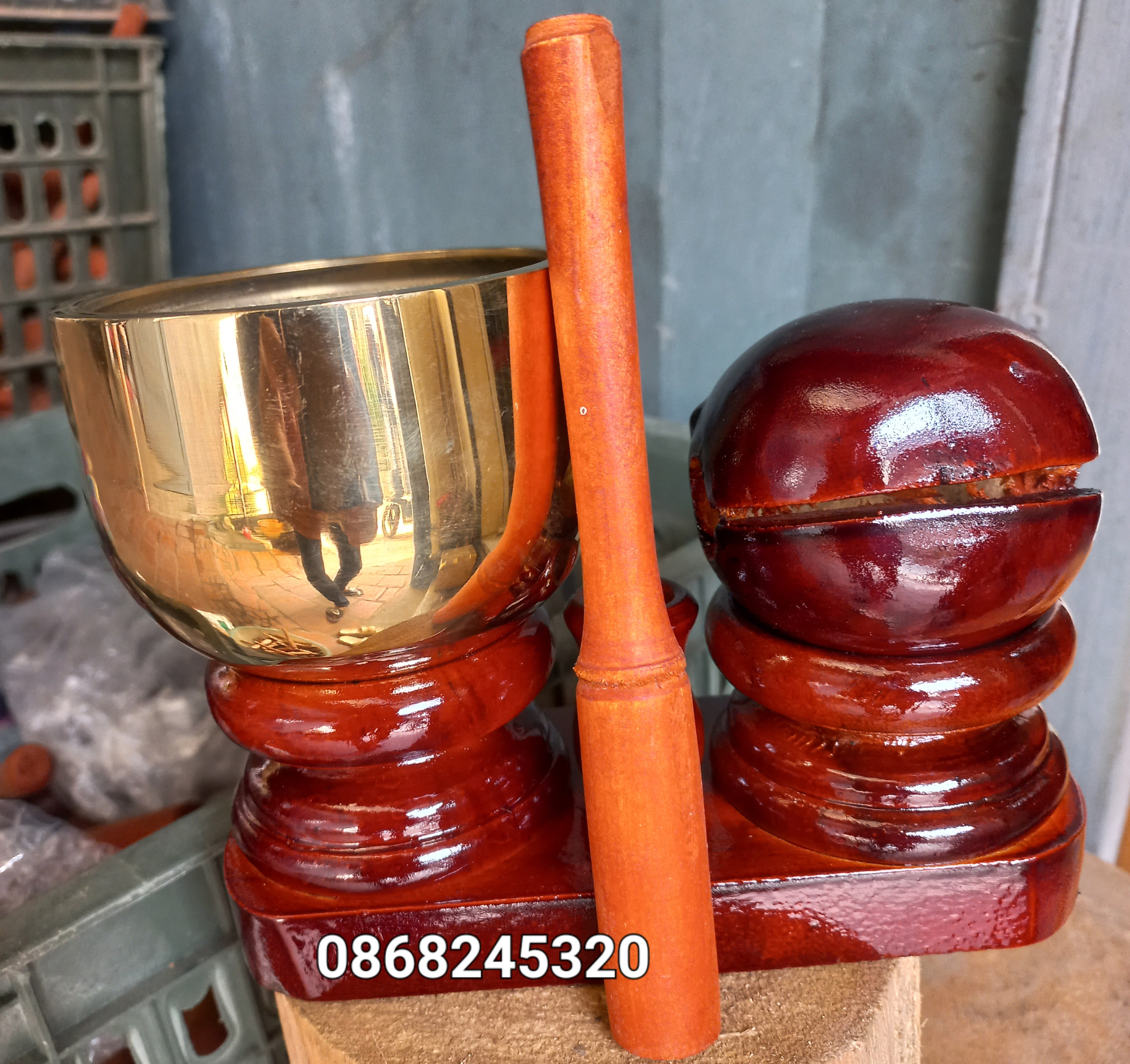 ✨Bộ chuông mõ tụng kinh bằng gỗ mít kt 6cm + cả chân đế