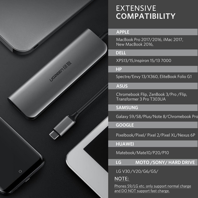 1. Hub đa năng 6 trong 1 Ugreen 80129 giúp bạn mở rộng từ 1 cổng USB Type C sang các cổng khác như HDMI, USB 3.0, khe đọc thẻ nhớ. Giúp bạn kết nối