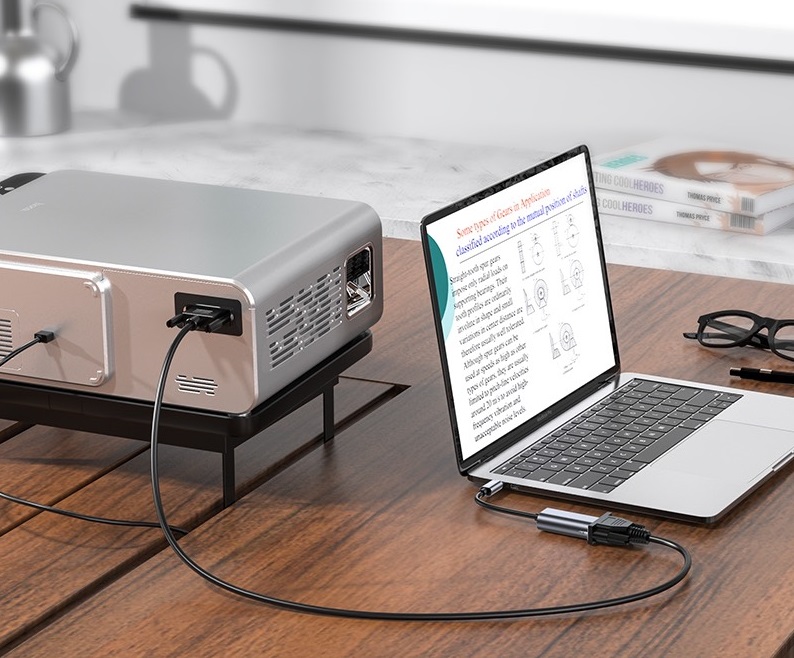 Chất liệu: Hợp kim nhôm + ABS, Kích thước: 45*23.7*13.8mm; trọng lượng: 15g Chiều dài dây: 130mm ± 4mm Giao diện: Type-C male to VGA Female Độ phân giải: 1080P (1920*1080 @ 30hz) giao diện