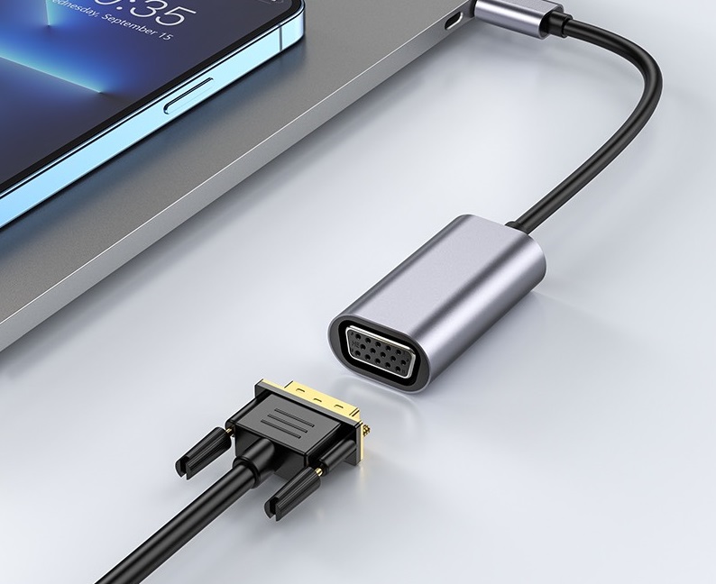 Mua tại TiktokChất liệu: Hợp kim nhôm + ABS, Kích thước: 4523.713.8mm; trọng lượng: 15g Chiều dài dây: 130mm ± 4mm Giao diện: Type-C male to VGA Female Độ phân giải: 1080P (1920*1080 @ 30hz) giao diện VGA mở rộng