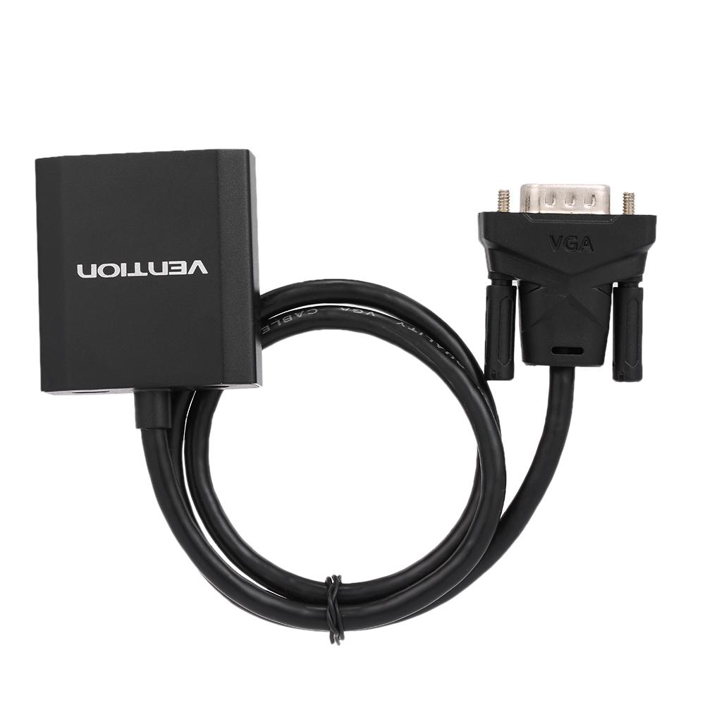 The VGA to HD converter converts the VGA interface of the device to an HD interface, using aluminum alloy metal shell with good working stability and performance, the conversion direction is from VGA male to HD female. Features: It supports up to 1080P resolution, supports audio and video signals exported synchronously. Nickel-plated connector resists corrosion and abrasion, enhances the signal transmission performance. Works with PC, laptop, TV, TV Box, projector, monitor and other VGA or HD devices. High-performance chip with high efficiency and low power consumption helps deliver stable and undistorted pictures. Easy operation and no need any drivers, plug an play, convenient to use. Specifications: Brand Name: VENTION Model Number: ACEBD Resolution: 1080P Cable Shielding: Aluminum foil Jacket Material: PVC Interface Shielding: Nickel-plated Conductor Material: copper Color: Black I/O Interfaces VGA Male input; HD Female output Voltage: DC 5V Cable length: approx. 50cm / 19.68in Pakcage size: approx. 12.3 12.1 3.2cm / 4.84 4.76 1.25in Package weight: approx. 143g / 5.04oz Package List: 1 VGA to HD Cable 1 3.5mm Audio Cable 1 Micro USB Cable 1 User Manual (English)