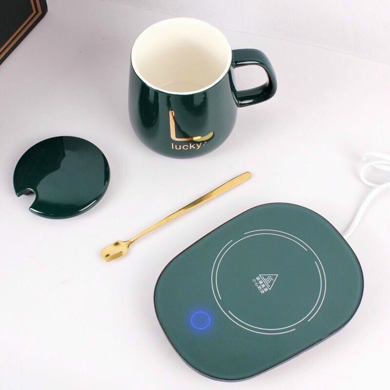 Bộ sản phẩm cốc hâm nóng đồ uống với 4 thành phần chính gồm: Cốc gốm sứ có thể thay thế, nắp đậy cốc, thìa mạ vàng rất tinh tế và sang trọng, đế điện hâm nóng kèm nguồn điện.