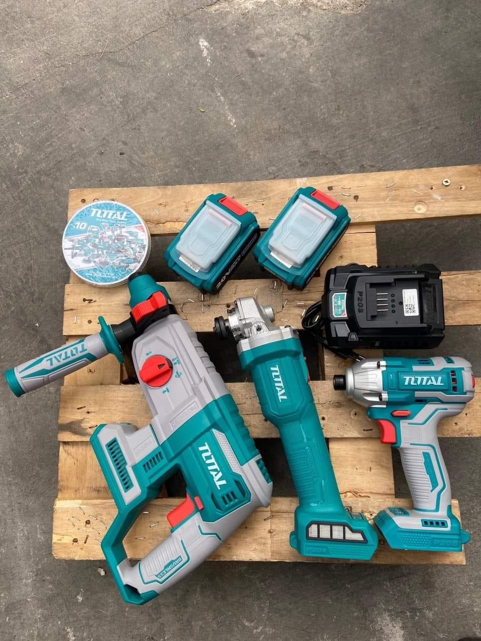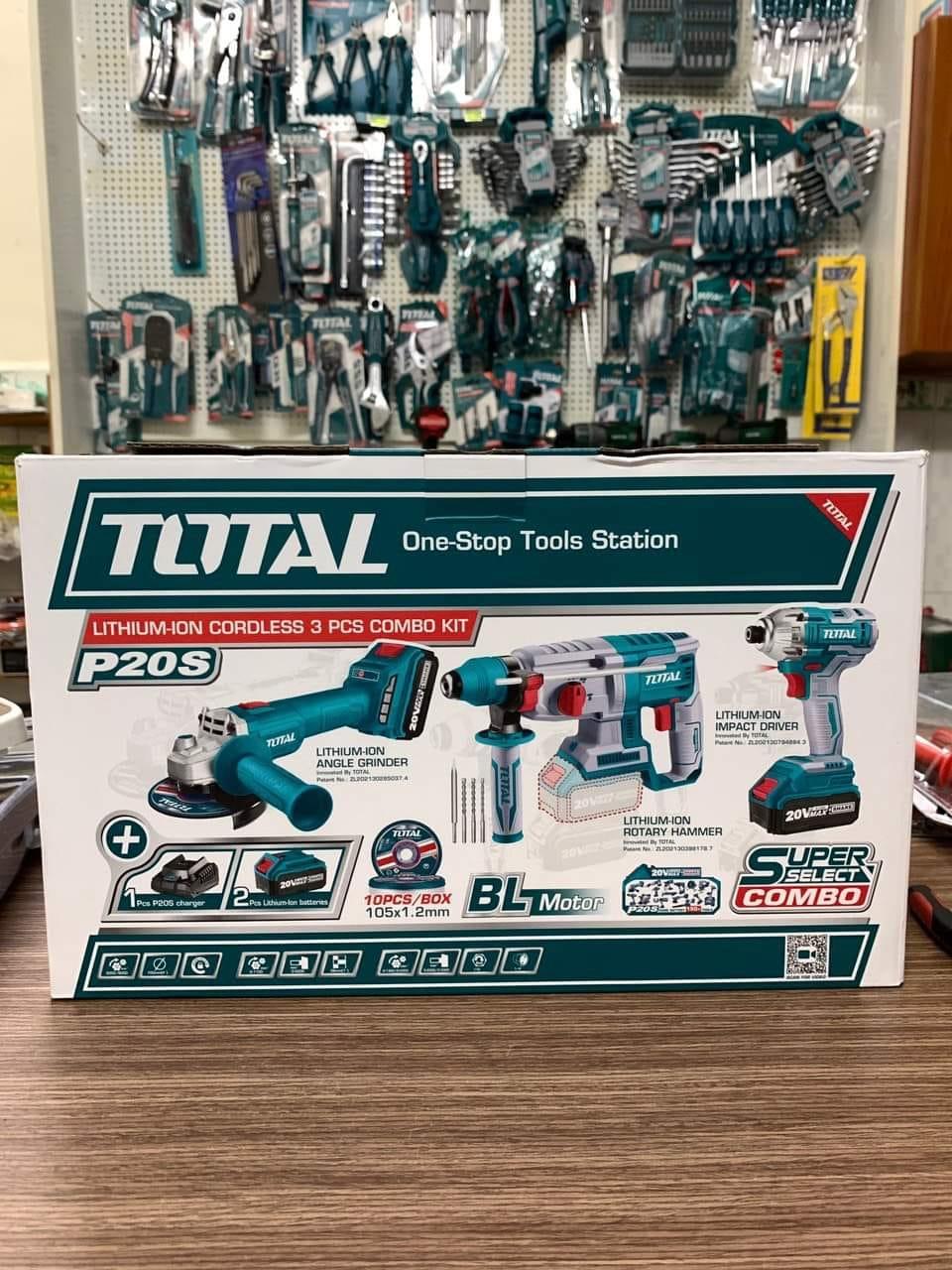 Bộ combo 3 máy khoan động lực, máy mài góc và máy siết vít dùng pin 20V TOTAL TOSLI2301510 là giải pháp tiện ích cho những công việc DIY cơ bản trong gia đình hay xưởng sản xuất.