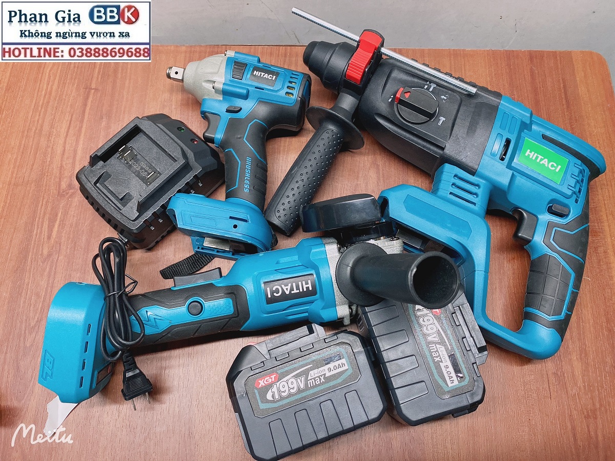 ✨Bộ Combo 3 Trong 1 Gồm Máy Khoan Đục Bê Tông, Máy Mài Và Máy Siết Bulong Dùng Pin 199V 15 Cell, Lõi Đồng 100%, Động Cơ Không Chổi Than - Bảo Hành 1 Năm