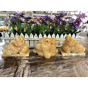 Chất liệu: Đá vàng cà rốt Kích thước: Dài 20 cm x Rộng 11 cm x Cao 11 cm Khối lượng: 3 kg Thiềm Thừ được người xưa gọi là Cóc tài lộc, Cóc ba