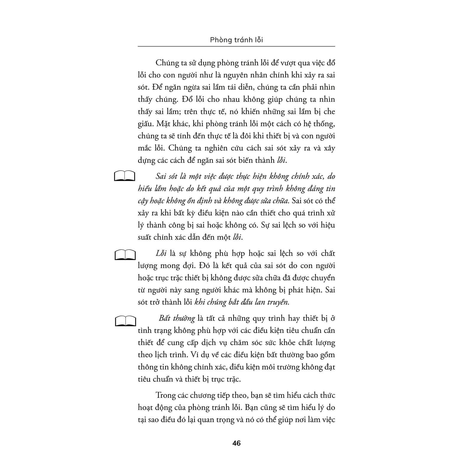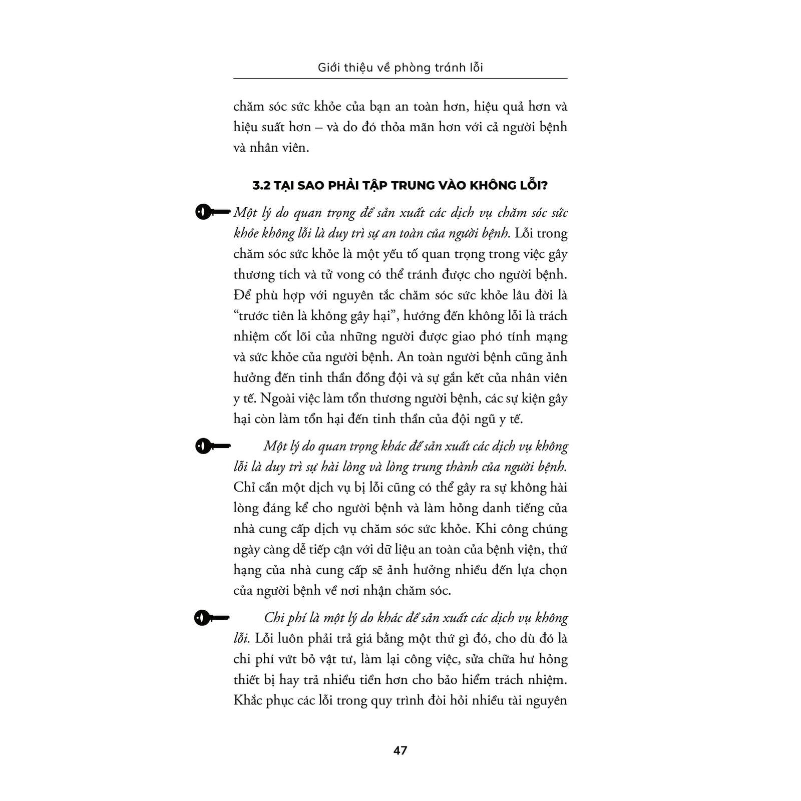 Cuốn sách bạn đang cầm trên tay hướng đến mục đích cung cấp những tri thức mạnh mẽ để giúp bạn làm cơ sở khám chữa bệnh của mình an toàn và năng suất hơn, cũng như khiến công việc của bạn dễ dàng và thỏa mãn hơn. Nó hướng tới cung cấp dịch vụ và sản phẩm chăm sóc sức khỏe không khiếm khuyết thông qua việc tìm ra và sửa sai sót trước khi chúng tạo thành lỗi.