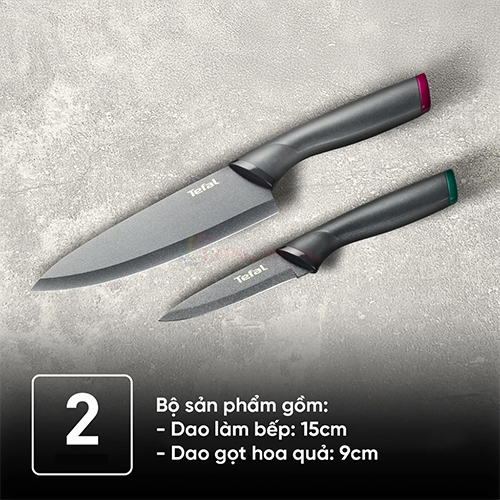 Bộ dao làm bếp và gọt trái cây phủ Titanium Tefal Fresh Kitchen 9cm/15cm K122S205 là bộ dao đa năng cao cấp, được thiết kế để đáp ứng nhu cầu sử dụng trong các công việc chế biến thực phẩm hàng ngày tại gia đình. Với chất liệu và công nghệ hiện đại, bộ dao này không chỉ giúp bạn cắt thái các loại thực phẩm dễ dàng mà còn đảm bảo sự sắc bén, bền bỉ và an toàn khi sử dụng.