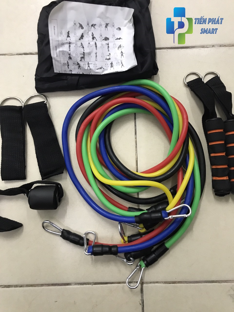 Bộ Dây Đàn Hồi Ngũ Sắc Tập Gym Đa Năng Tienphatsmart 11 món, tặng kèm túi đựng và hướng dẫn