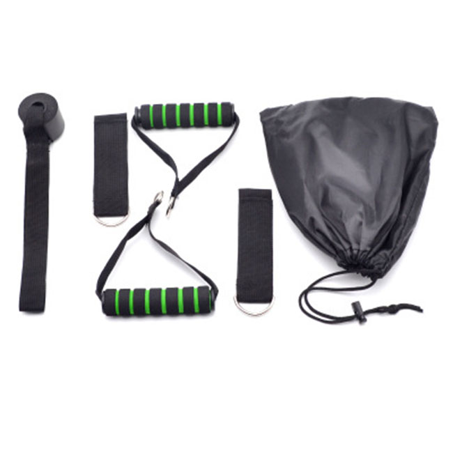 Bộ dây đàn hồi tập thể lực có 5 dây, mỗi dây có mức trọng lượng khác nhau, từ nhẹ tới nặng (8 lbs, 15 lbs, 20 lbs, 25 lbs, 30 lbs) có thể