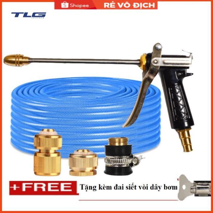 ✨Bộ dây vòi xịt nước rửa xe, tưới cây . tăng áp 3 lần, loại 20m 206318 đầu đồng,cút đồng,+ tặng đai