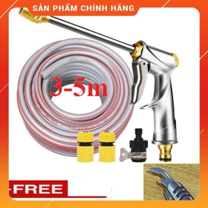 ✨Bộ dây vòi xịt nước rửa xe,tưới cây ,tăng áp 3 lần,loại 3m,5m 206701-2 đầu đồng,cút,nối nhựa đen+ mở chai