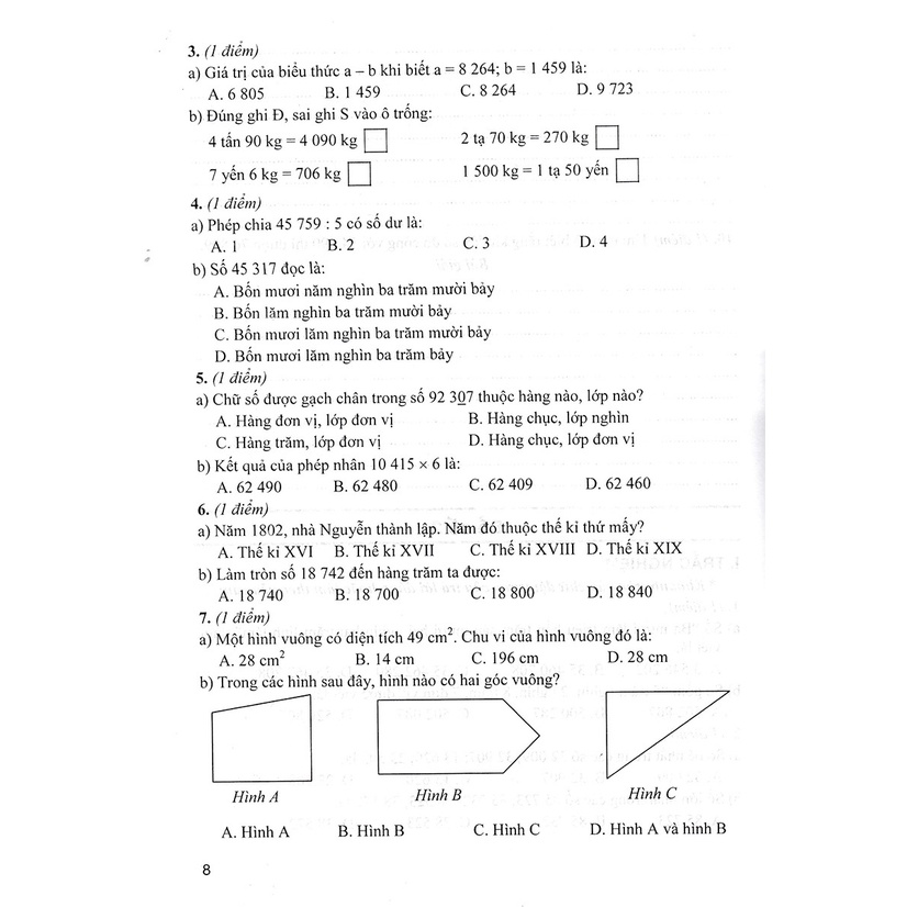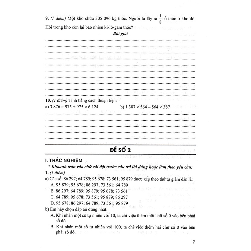 Combo Bộ Đề Kiểm Tra Môn Toán + Tiếng Việt Lớp 4 (Dùng Kèm SGK Kết Nối Tri Thức Với Cuộc Sống) (Bộ 4 Cuốn) 1. Bộ Đề Kiểm Tra Môn Toán Lớp 4 Tập