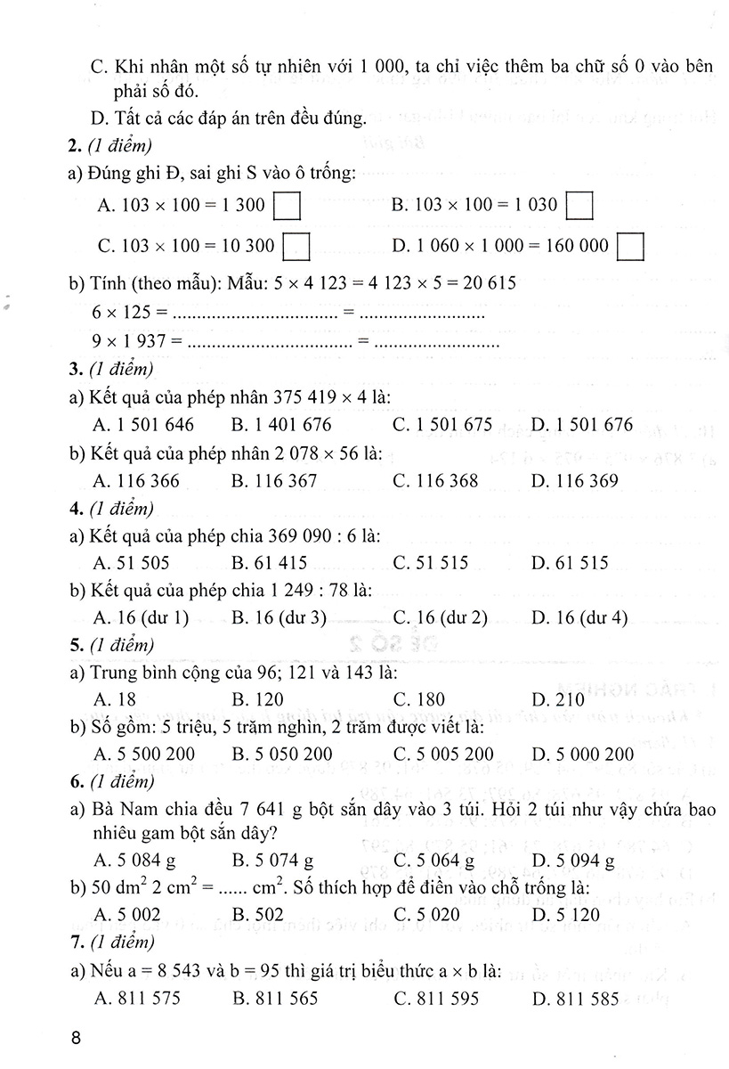 Bộ Đề Kiểm Tra Môn Toán Lớp 4 Tập 2 (Dùng Kèm SGK Kết Nối Tri Thức Với Cuộc Sống)