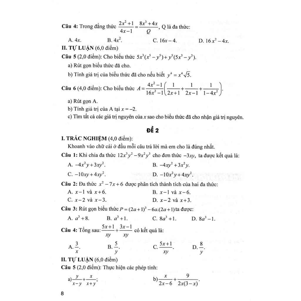 phân Loại Và Giải Chi Tiết Các Dạng Bài Tập Toán Lớp 8 - Tập 1 + tập 2 Nội dung của mỗi tiết học đó là các định nghĩa, các công thức toán học,