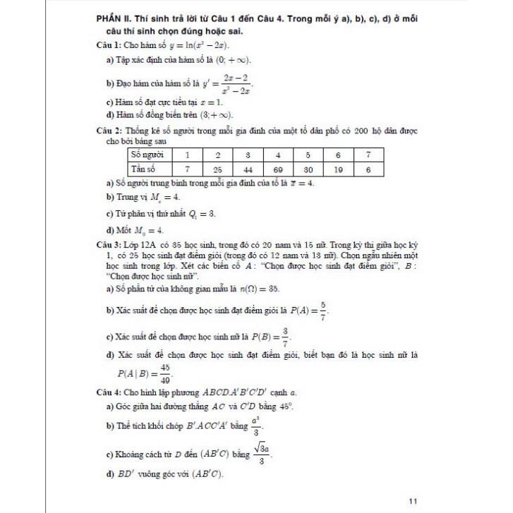 Phần này đưa ra đáp án toàn bộ câu hỏi và trình bày lời giải chi tiết các câu hỏi ở Phần II và Phần III của từng đề thi theo thứ tự từ Đề số 1 đến Đề số 20.