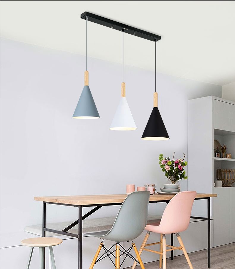 Để không gian phòng ăn của gia đình trở nên lung linh và ấm áp hơn thì hiện nay, rất nhiều người đã nhờ đến sự trợ giúp của những mẫu đèn trang trí. Với mỗi không gian khác nhau thì việc lựa chọn đèn trang trí là không giống nhau bởi bạn cần lựa chọn sao cho phù hợp với không gian cũng như đảm bảo được khả năng chiếu sáng cần thiết cho quá trình sinh hoạt. Hiện nay có 2 dòng sản phẩm đèn trang trí phòng ăn được sử dụng phổ biến trong không gian nội thất phòng ăn đó là đèn thả và đèn chùm. Đèn thả trần kiểu dáng hiện đại là hàng nhập khẩu cao cấp với chất lượng được đảm bảo theo tiêu chuẩn Châu Âu. Chất liệu nhôm lựa chọn chế tạo nên sản phẩm có ưu điểm vượt trội về khả năng chống hao mòn, ôxy hóa, giữ sản phẩm lâu bền cùng thời gian.  Công nghệ chiếu sáng hiện đại của bóng đèn led giúp cho đèn bàn ăn đẹp cung cấp ánh sáng đều màu, ổn định trng khoảng diện tích từ 10-15m2 mà không bị chập chờn, chớp nháy gây ảnh hưởng đến thị giác người nhìn. Hơn nữa, chúng còn làm nổi bật lên vẻ đẹp của các món ăn từ đó thu hút các thành viên trong gia đình quây quần lại thưởng thức. THÔNG TIN KÍCH THƯỚC: đường kính chao 15 (cm)  Chân đèn bằng kim loại sơn tĩnh điện, choá đèn bằng nhôm hình phễu có tác dụng hội tụ ánh sáng cao ,thường được sử dụng vào vị trí bàn ăn Quý khách có thể sử dụng đế tròn hoặc đế ngang tùy theo không gian Dây đèn điều chỉnh theo độ cao trần , choá đèn có thể để 3 cái bằng nhau đối với ray ngang Sử dụng đui E27 , dễ thay thế bóng ,thay đổi công suất phù hợp cho từng vị trí láp (bàn ăn cần công suất lớn hơn đối với các vị trí khác) Bộ đèn đã bao gồm bóng LED chuyên dụng