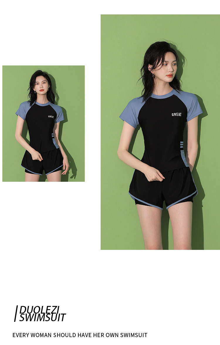 ✨Bộ đồ bơi nữ gồm quần đùi và áo ngắn tay trẻ trung, năng động