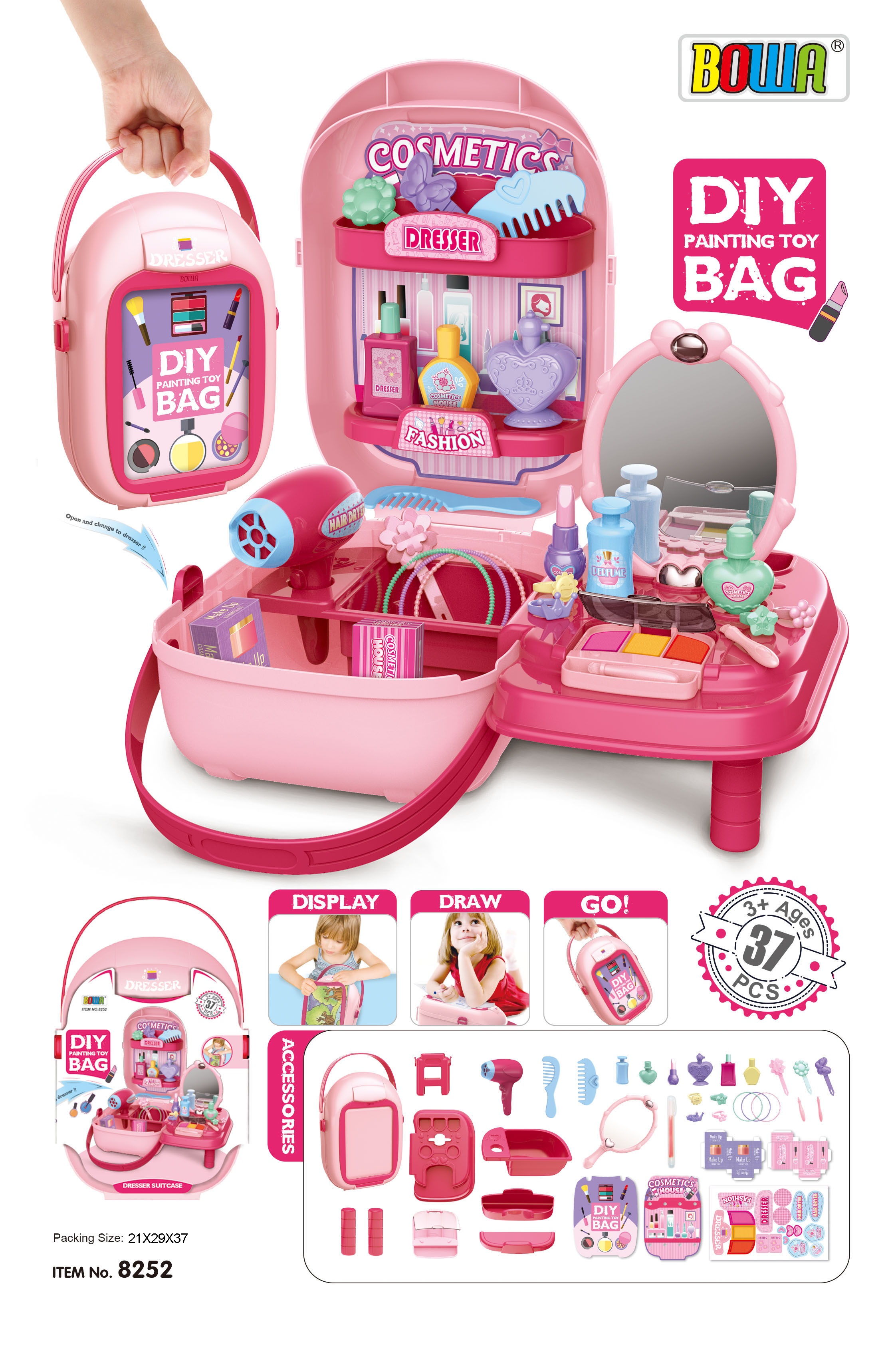 - Bộ sản phẩm BOWA 8252 – Bộ trang điểm 37 món gồm các bộ dụng cụ trang điểm thường ngày như gương, lược, son, phấn, máy sấy, nước hoa… Được thiết kế dạng hộp đựng xách tay vô cùng tiện lợi, giúp bé có thể mang đi đến bất cứ nơi đâu.