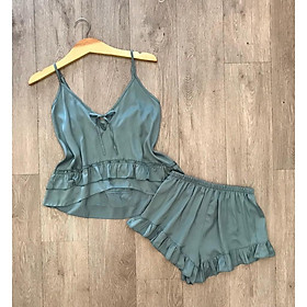 ✨Bộ đồ ngủ nữ mặc nhà 2 dây lụa cao cấp mềm mại hàng thiết kế Màu Xám