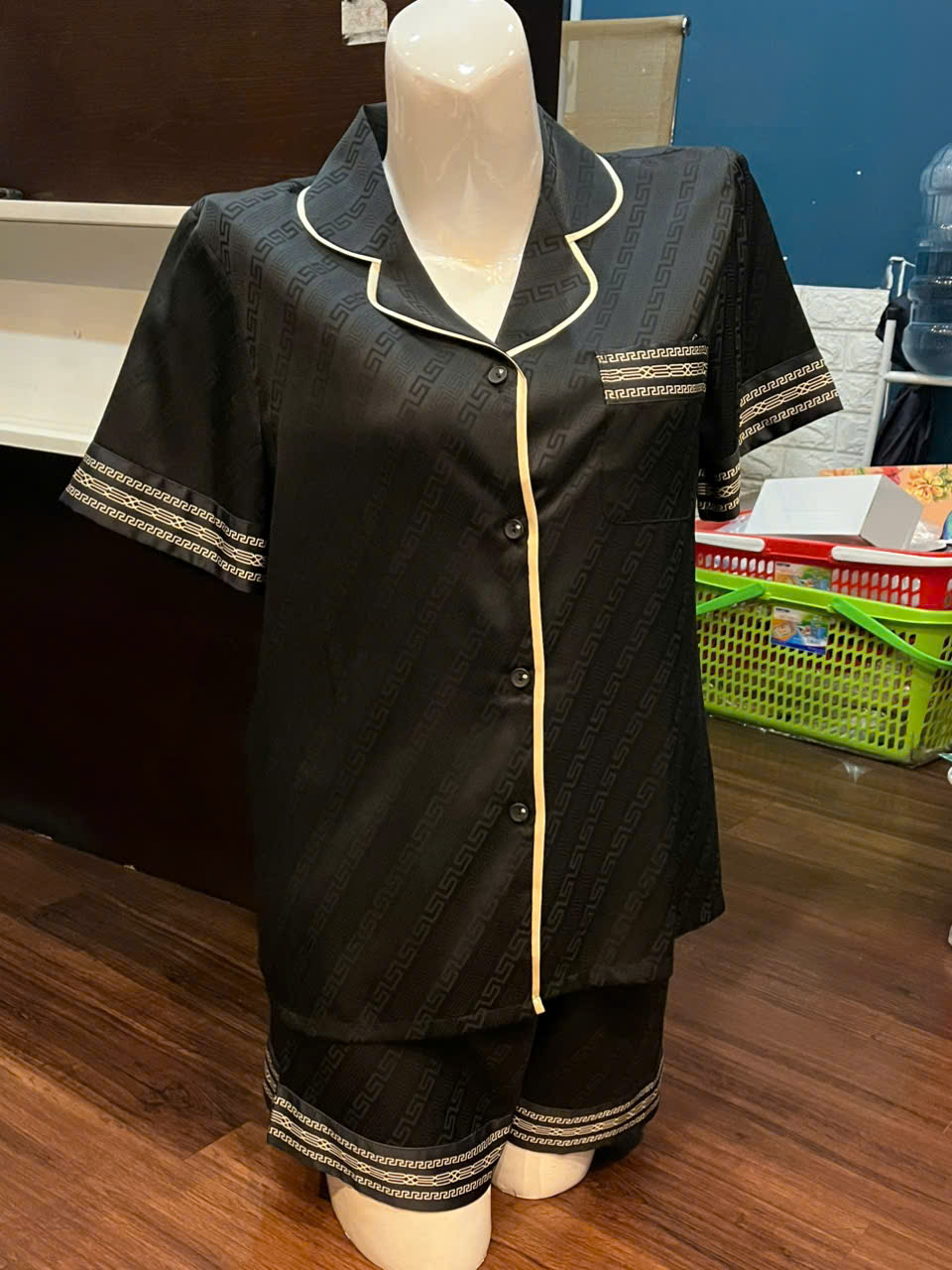 Thương hiệu: Sanny House Tên sản phẩm: Bộ Đồ Ngủ Chất liệu: lụa cao cấp mềm mịn, co giãn, thấm hút tốt Kiểu dáng: dễ thương, trẻ trung, hiện đại Màu: đen Size: dưới 60kg