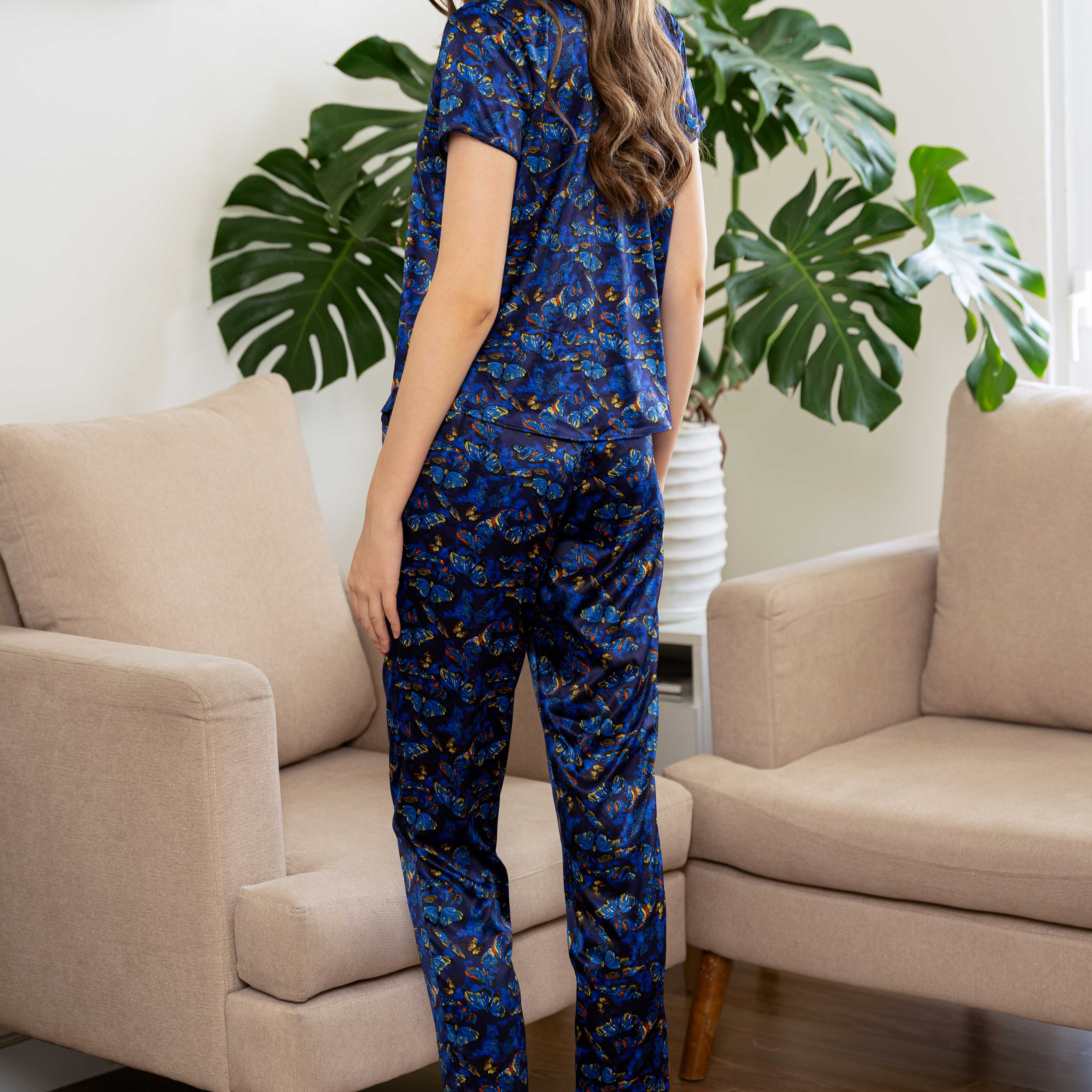 Bộ satin quần dài tay ngắn form basic