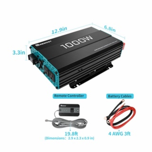 Renogy 1000W 12V Pure Sine Wave Inverter hoàn hảo cho hầu hết các hệ thống điện off-grid, đặc biệt phù hợp sử dụng trên RV, motorhome và pickup.