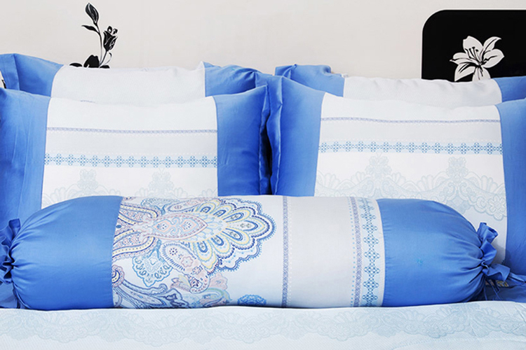Tô điểm cho phòng ngủ thêm sang trọng, hiện đại Bộ Drap & Chăn Chần Lụa Tencel Bee House F002 có màu xanh dương tươi mát gồm 5 món: 1 drap bọc 1.6 x 2 m/
