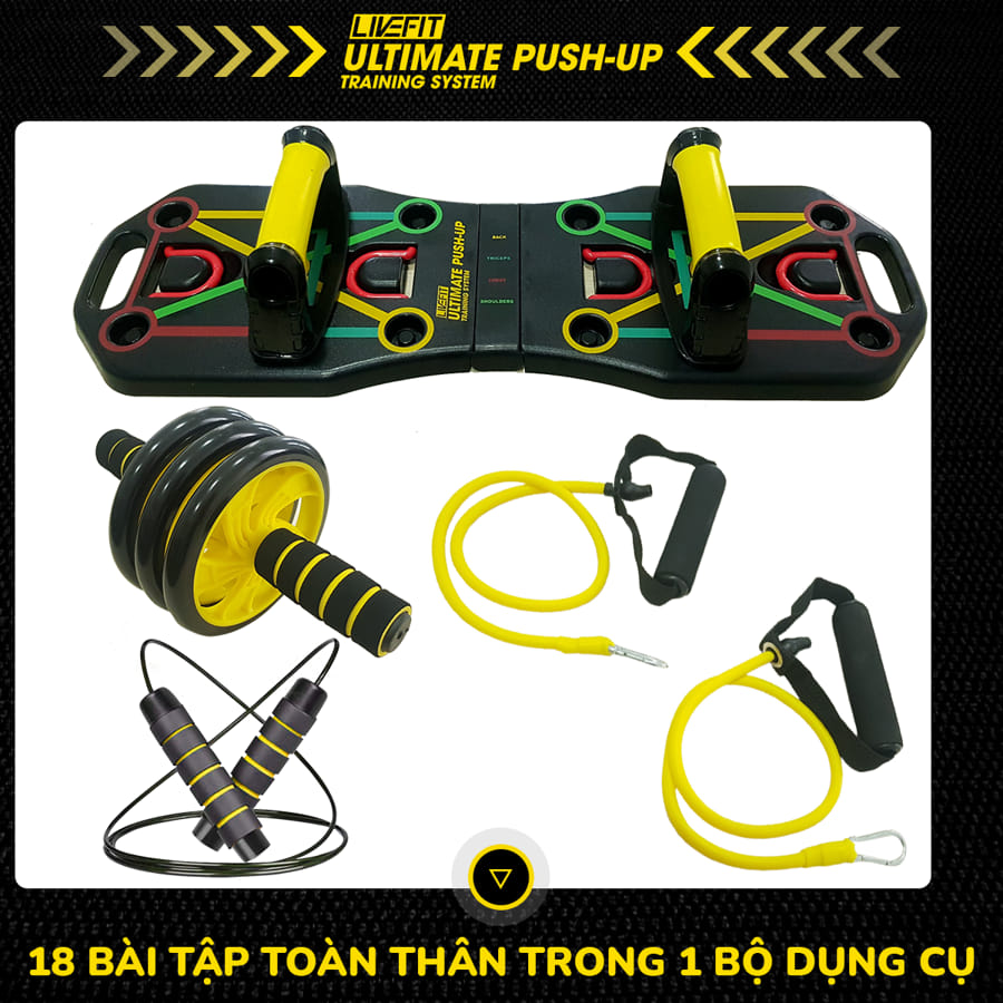 Bộ dụng cụ hít đất và tập luyện thể thao chuyên nghiệp LiveFit Ultimate Push-Up Training System 18in1 là sản phẩm được các chuyên gia GYM đánh giá rất cao và tính hiệu quả và